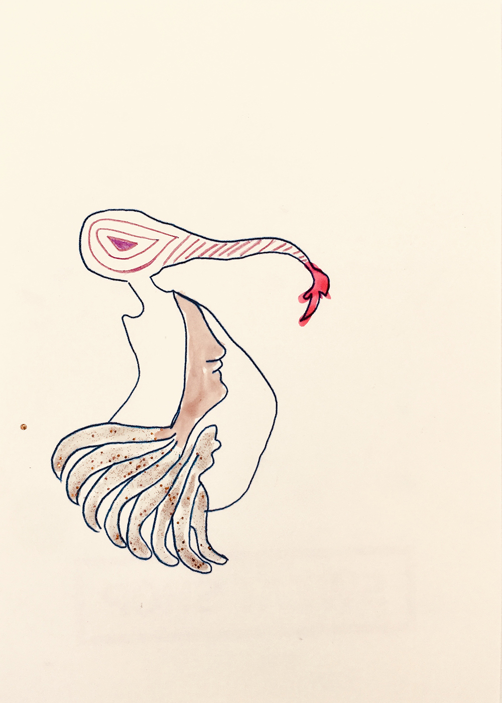RD 19AW, blueprint, crayon and nailpolish on paper, A4, 2019