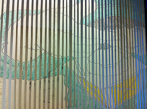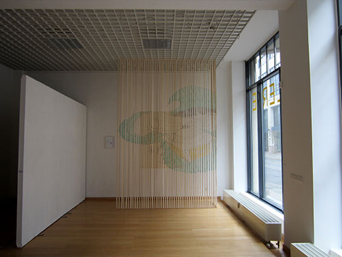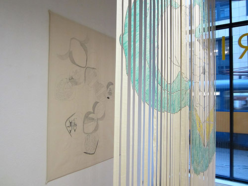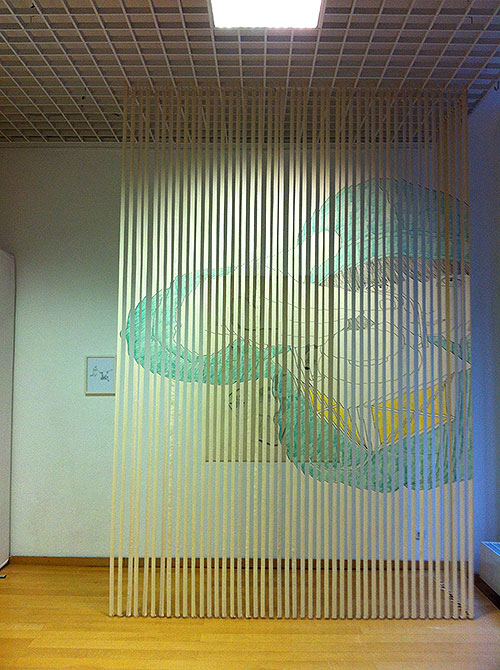 Zeichnung auf 50 Stoffstreifen zwischen Decke und Boden gespannt, variabel an Raum anpassbar