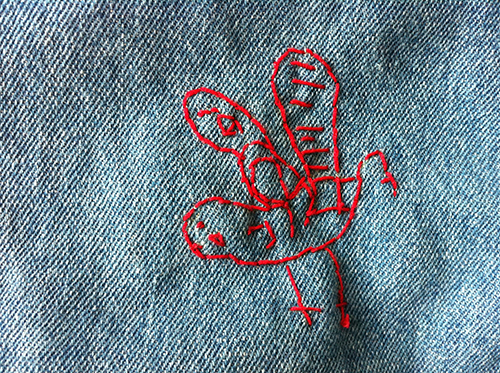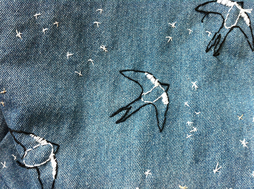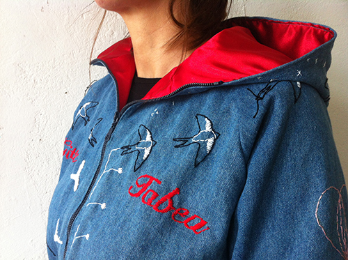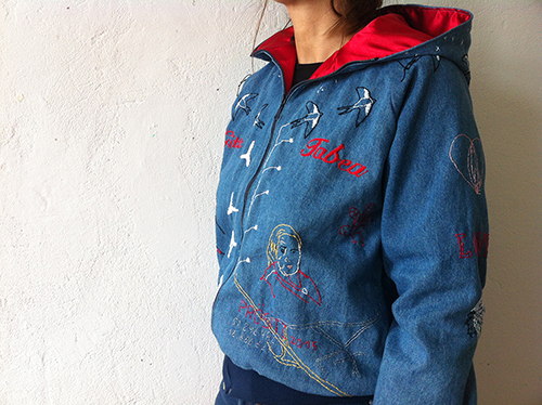 selbstgenähte und handbestickte Jacke, Denim, Futterstoff, Wolle, 2015